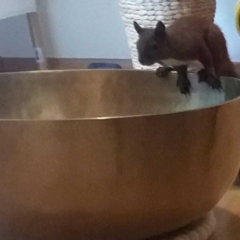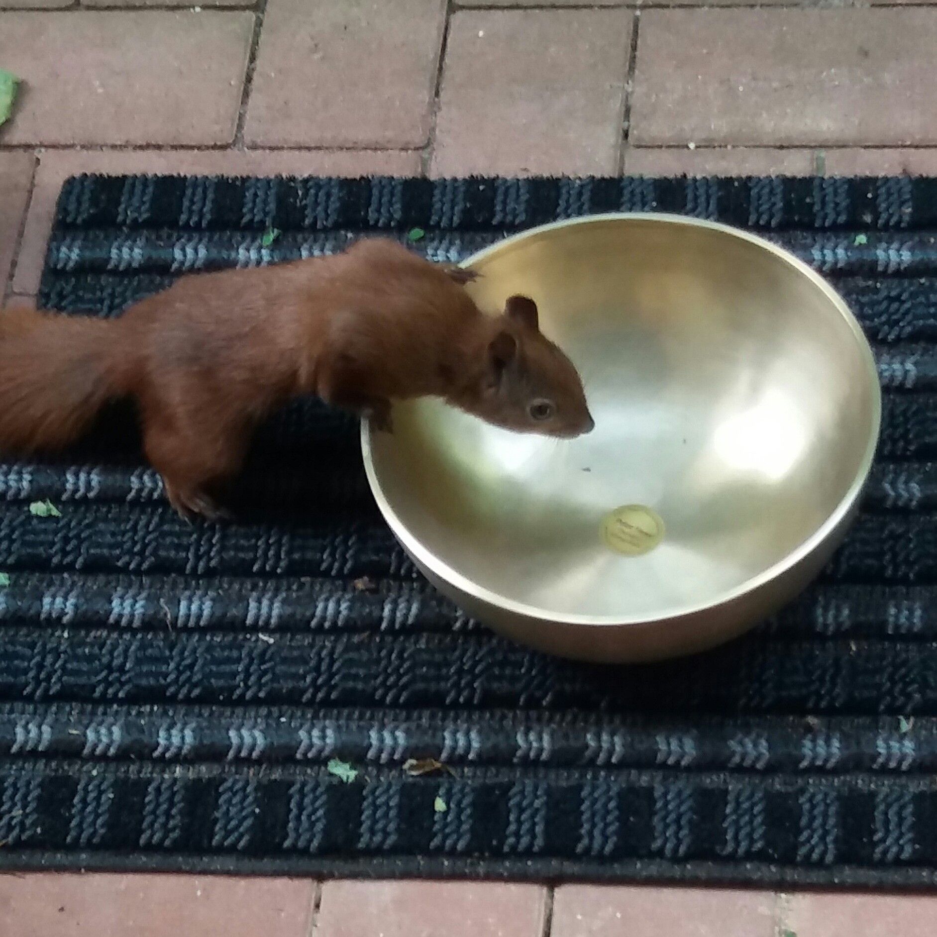 Neben leckeren Nüssen lässt sich "Hörni" auch von den Klangschalen und Klängen verzaubern. Und so manches Mal kam es auch schon herein, wenn ich in einer Pause den Klangraum gelüftet habe.