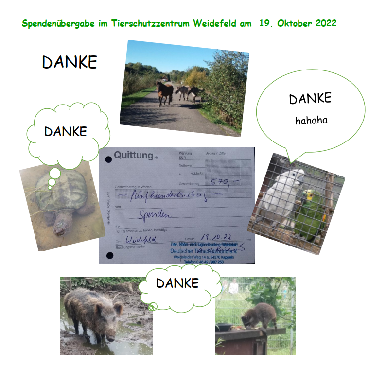 Besuch im Tierschutzzentrum Weidefeld in Kappeln und Übergabe des gesamten Erlöses.
